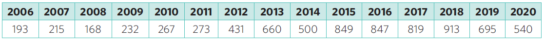 La página web de la Comisión Interamericana de Derechos Humanos (CIDH) cuenta con una sección estadística por país, en la que se registran, entre otros datos, las peticiones recibidas por el organismo de 2006 a 2020.25 El recuento de nuestro país es el siguiente: