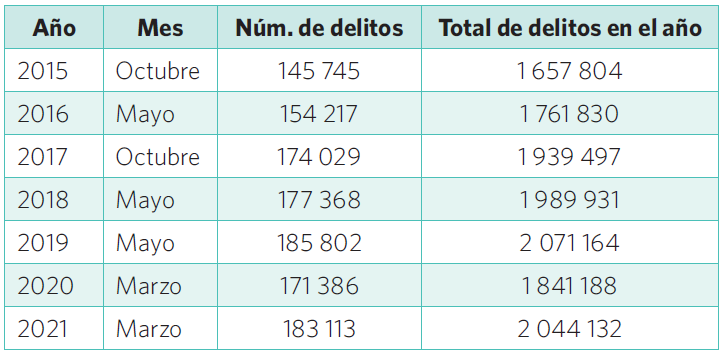 Gobierno de México. “Incidencia delictiva”. https://www.gob.mx/sesnsp/acciones-y-programas/incidencia-delictiva-299891?state=published (Fecha de consulta: 24 de junio de 2022).