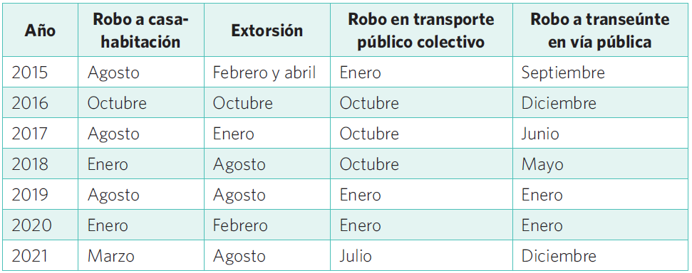 Si revisamos las cifras reportadas en la incidencia delictiva del SESNSP, encontramos que, en los últimos siete años, son tres meses los que concentran el mayor número de delitos, siendo los que se exponen a continuación: