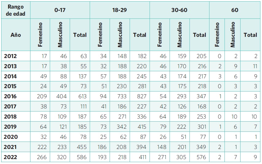 Con el fin de analizar el estado de prestación de servicios de salud sexual y reproductiva se brindará un panorama general de la situación en la Estación Migratoria de la Ciudad de México, ello con base en datos obtenidos a través de diversas solicitudes de acceso a la información realizadas al INM. Así, cabe observar que el análisis comprende la población detenida, categorizada como mujer . hombre en dicha estancia migratoria de 2012 a 2022, es decir, durante un periodo de 10 años.