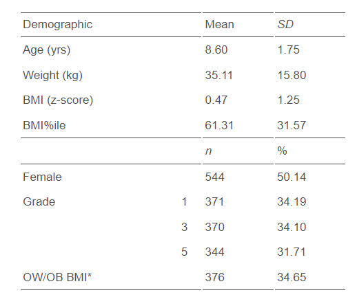 Data from this study come from the Intervention for PhysicaL Activity in Youth (IPLAY) study. The study was approved by the Colorado Multiple Institutional Review Board (IRB), Colorado State University IRB, and the University of Hawaii IRB. IPLAY was a multi-year intervention trial exploring the impacts of schoolyard renovations and/or a recess curriculum (SPARK) on PA levels among elementary aged students (Nigg et al., 2019). Importantly, no significant differences were found among the groups within the intervention, thereby allowing the use of the full dataset to be explored without concern about intervention effects.