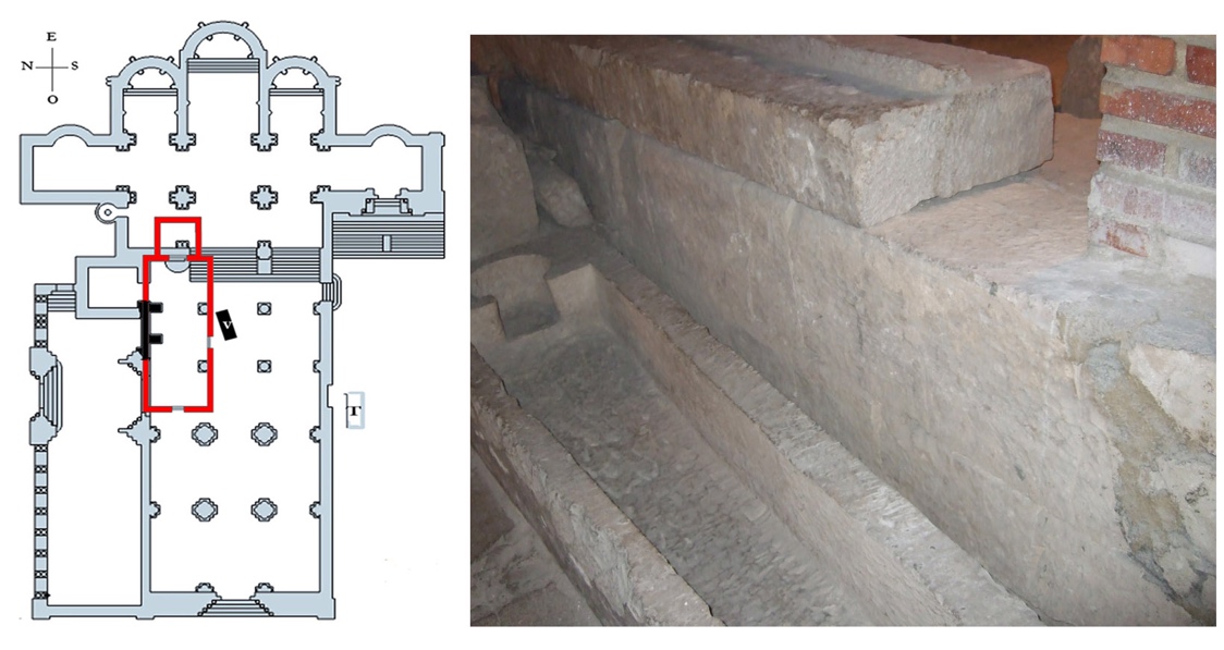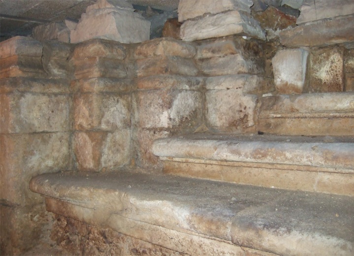 Fig. 12. Restos de la escalera del pórtico conservados bajo la actual iglesia. Fotografía del autor.