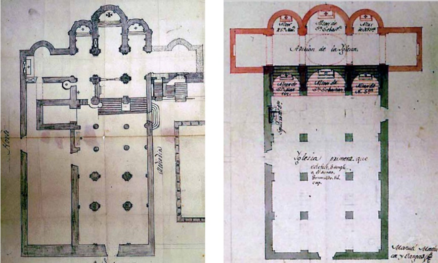 Fig. 2. Plantas del edificio realizadas en el siglo XVIII. Echevarría (izquierda) y Machuca (derecha)