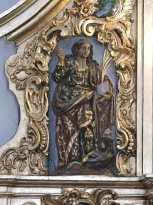 [51] Antes de proseguir una observación con respecto a estos medios relieves. En el retablo contratado a finales del XVI sólo constan cuatro relieves (Visita de la Virgen a Santa Isabel, nacimiento de San Juan, el bautismo en el Jordán y el martirio del santo). Sin embargo, en la descripción del retablo de principios del siglo XX se señalan seis, dos más que lo contratado en un principio. Desconocemos si los dos relieves de más fueron una ampliación al contrato de 1598 o se realizaron en el siglo XVIII. En el contrato de 1598 no consta relieve alguno de San Juan Evangelista, sólo se habían de realizar episodios de la vida de San Juan Bautista.