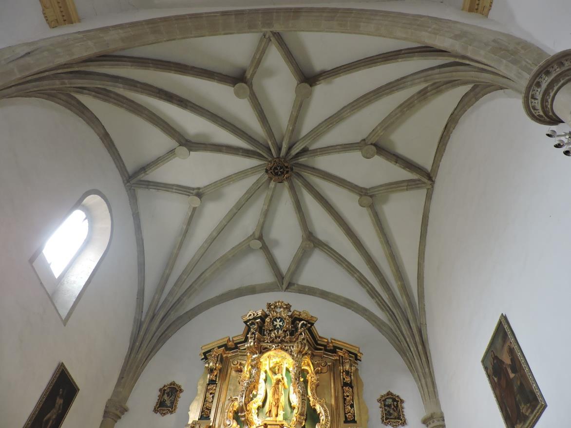 Mención aparte, por su notable impronta, merece la hermosa bóveda gótica que cubre la capilla, siguiendo un diseño habitual a finales del siglo XV y a comienzos del XVI, solución arquitectónica que indica la vigencia de gustos y técnicas constructivas todavía medievales. Los arcos de medio punto y las nervaduras de piedra, que la configuran, contrastan vigorosamente con la blancura de los plementos.