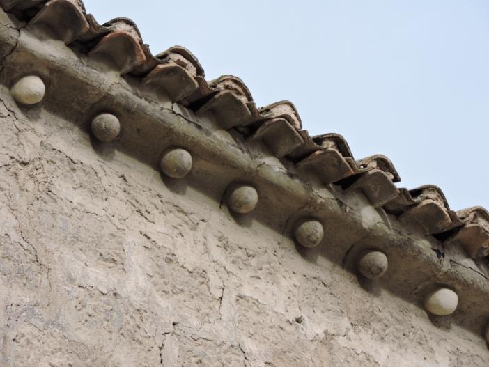 Recorre toda la cabecera un alero con bolas góticas, motivo decorativo muy del gusto del siglo XV y principios del XVI, aplicándose con frecuencia en la ornamentación arquitectónica de los distintos reinos peninsulares. Aunque es un recurso propio del románico su uso se generalizó durante la alta Edad Media.