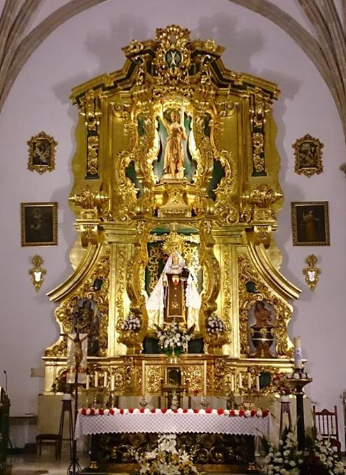 En 1598 se contrataba su construcción, descociéndose hoy en día si se ejecutó de forma íntegra o tan solo el primer cuerpo por falta de caudales [39]. En el siglo XVIII se tomo la decisión de contar con un nuevo retablo, reutilizando parte del anterior, adaptándolo a una traza barroca, llevándose a cabo entre 1752 y 1764.