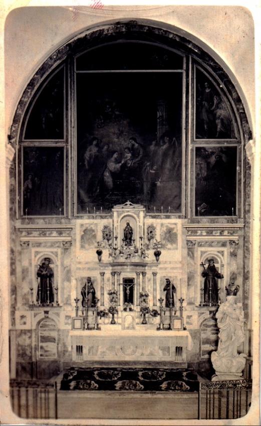 Fig. 9. Anónimo: Fotografía de Nuestra Señora del Triunfo en el presbiterio de la iglesia conventual de Santa Catalina (Capuchinos), mediados. s. XX.