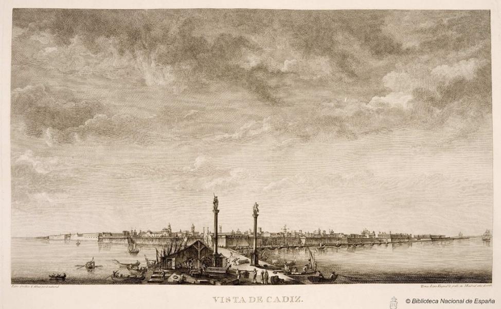 Fig. 14. Pedro Grolliez (dib.)/ Tomás López Enguídanos (grab.): Vista de Cádiz, 1795. Fuente: Biblioteca Nacional de España.