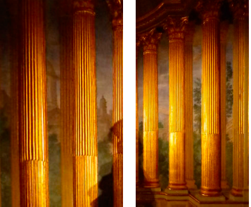 Figs. 13-14. Lorenzo de Ferrari. Detalle del paisaje ilusionista de la capilla del palacio Tobia Palavicino. Génova. [Wikipedia Commons].