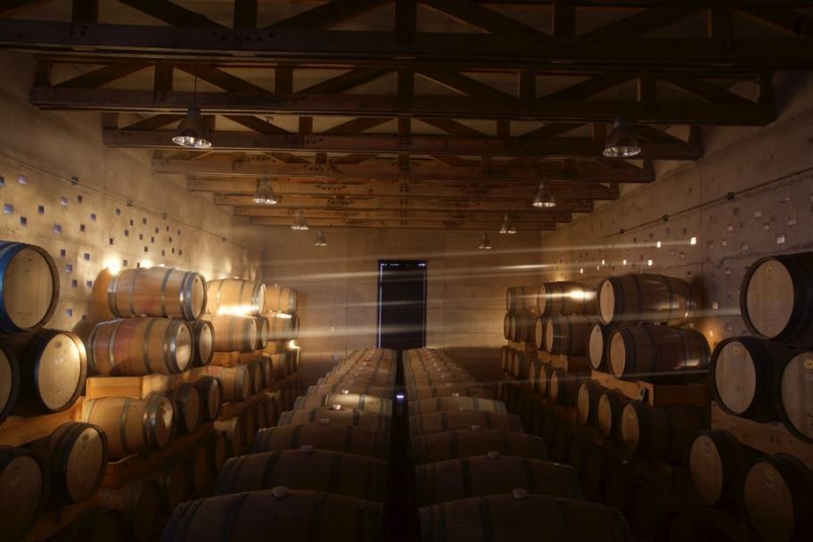Se caracteriza por tener una ubicación que trabaja con el paisaje y la funcionalidad. Se ordenó buscando la eficiencia energética y de la fabricación del vino. Para controlar la temperatura, aislaron el edificio cubriéndolo con la tierra del lugar, para lo cual utilizaron los cortes en bruto, dejando el terreno expuesto y trabajando solo los pisos y los techos, los cuales están hechos con barcos desechados por el puerto para ser usados como bóvedas de cañon, al estilo de los antiguos constructores quienes construían barcos como iglesias[32] (Figura 8).