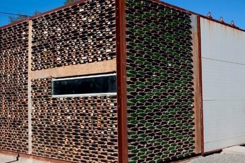 Fig.6. Madera y botellas de vidrio recicladas en la Estación de Oficios. Fuente: Fotografía de Javier Zayeck, TAC.