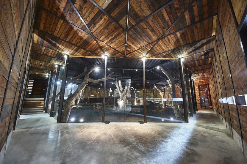 Fig. 13. Madera reciclada y estructura de acero en Vinícola Bruma y hotel boutique Casa 8. Fuente: Fotografía de Javier Zayeck, TAC.