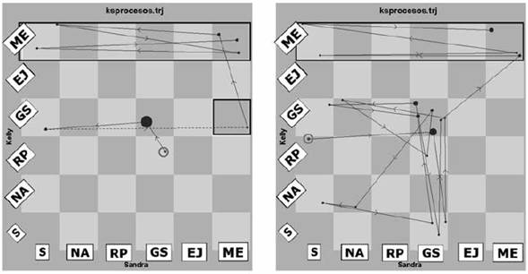 Sin embargo, se observa que, a diferencia de las demás parejas, la díada conformada por Kelly y Sandra participó en evaluaciones más detenidas (Figura 5).