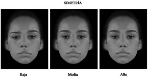 En el caso particular de los rostros atractivos, los resultados consistentes acerca de la valoración positiva que recibe la cara promedio pueden ser explicados por la noción de Simetría Facial (SF) (Zebrowitz, 1997). De acuerdo con las ideas planteadas desde la PE, la SF actúa como señal de salud, calidad genética y potencial reproductivo (Buss, 2007; Buss, 2013) y está relacionada positivamente con muchos factores que reflejan salud, calidad reproductiva y mejor disposición atlética y de talentos (Rentschler, Jüttner, Unzicker, y Landis, 1999; Baudouin y Tiberghien, 2004; Gangestad y Scheyd, 2005; Wade, 2010). Una cualidad que es observada en miembros de varias especies incluyendo a los humanos (Shepherd y Bar, 2011).
