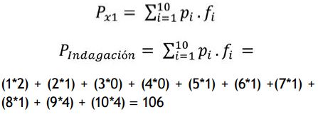 ρі : Valor jerárquico reportado por cada encuestado a la palabra xi. Ejemplo: Indagación.