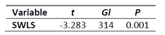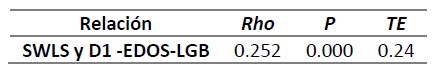 Se encontró una correlación directa, estadísticamente significativa y débil (Rho = 0.252; . < 0.05) con un tamaño de efecto pequeño (0.24) entre satisfacción con la vida y la dimensión integración a la identidad