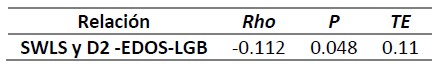Por otro lado, se encontró una una correlación inversa, estadísticamente significativa y débil (Rho = - 0.112; p < 0.05) con un tamaño del efecto pequeño (0.11) entre satisfacción con la vida y la dimensión incertidumbre y preocupación por la aceptación.