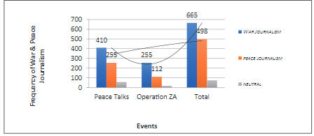 Considering the third research, the newspapers gave war-oriented coverage to both the events. These results correspond to a previous study by Shinar (2013) that newspapers would remain war-oriented whether they cover peace talks or an ongoing conflict. Subhani (2015) suggested that the Pakistani press played a negative role in peace talks with TTP by favouring war instead of peace. Pakistani newspapers’ narrative was more supportive of the government’s stance in the case of a military operation, while in the case of peace talks the attitude was opposite. So, the notion that media most of the time goes with the official stance does not fit here.
