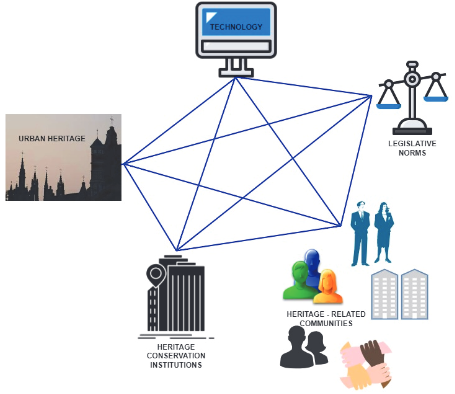 To model the UHP processes and the role of the technology in UHP work, we draw from the actor-network theory (ANT) perspective. The theoretical framework of this study is based on four general assumptions: (i) the UHP related complex socio-technical system could be perceived as the network of related agents; (ii) the societal values of urban heritage are created inside of this agent network; (iii) the creation of heritage-based societal values is higher in participatory agent networks in comparison with non-participatory agent networks; (iv) the use of the particular kind of technology enables a higher level of participatory inside of agent-network.