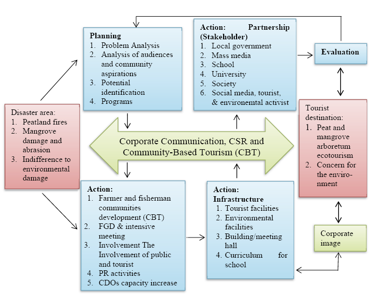 In this case, corporate environmental communication through conservation programs becomes important. Environmental communication to resolve environmental damage needs to be emphasized to the local community and must receive support from various stakeholders (Gunathilaka, 2020). One of the integrated management is the corporate communications involvement through corporate social responsibility (CSR) in order to help preserve the environment and the company in a sustainable manner (Bickford et al., 2017; Dubravská et al., 2020). The existence of CSR does not only support the formation of a positive corporate image, but also increase the awareness of internal and external audiences (Dutta & Imeri, 2016). In addition, CSR has a role in campaigning for environmental issues such as forest and land fires, mangrove damage, or climate change. On the other hand, the company’s role in preserving the environment must pay attention to environmental aspects and the existence of the surrounding community (Widhagdha et al., 2019). The existence of the local community is the main stakeholder in achieving sustainable development, especially in the development of tourism (Lundberg, 2017).