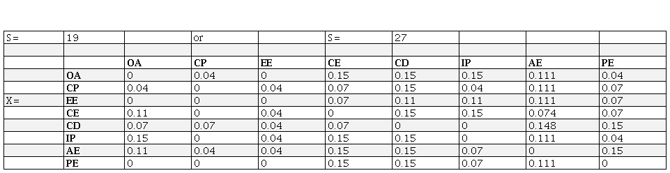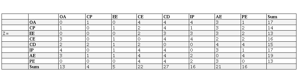 Step 2. Normalised initial direct connection matrix X was calculated using Eq. (2) to Eq. (5).