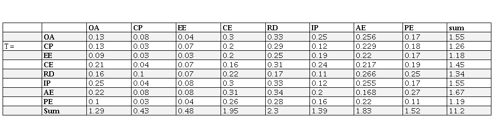Step 3. The total connection matrix T was calculated using Eq. (6) to Eq. (7), as pointed out further.