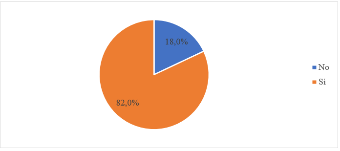 La primera parte de los resultados se centraba en conocer el uso que hacían los alumnos del grado de Publicidad y Relaciones Publicas de las aplicaciones de IA. Los datos mostraron que el 82 % (n=246) del alumnado afirma haber utilizado alguna herramienta de IA —Figura 2—.
