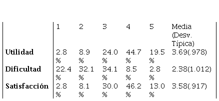 3. Descubrir la utilidad en lo relativo a su futura profesional, dificultad y el nivel de satisfacción en general que manifiestan los alumnos que utilizan esta herramienta.
