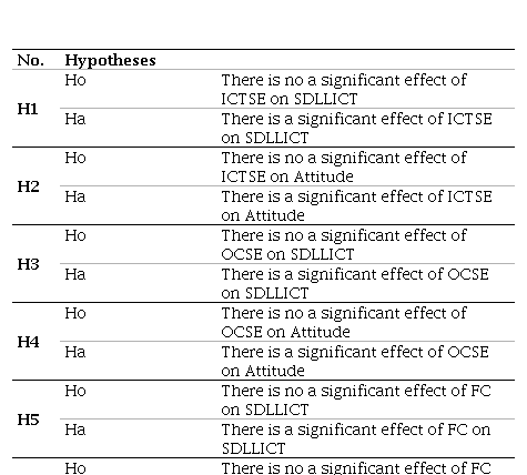 To response the current issue on SDLL with technology, particularly in the context of EFL university students in Indonesia, the researcher views a need for further investigation into students’ self-directed language learning with ICT. To take benefit from ICT for SDLL, it is necessary to fully comprehend the variables that promote and enable SDLL through ICT. Such evidence would enable learners, teachers, or instructional designers to use suitable scaffolding tactics for successful SDLL using technology. Some researchers emphasised the necessity for more studies that investigate aspects impacting SDL through the use of ICT (Lai et al., 2022; Pan & Shao, 2020). Although studies have largely focused on the impact of technology use on SDL, there is minimal study on the determining variables affecting SDLL with ICT. As a result, it is essential to understand the factors influencing the use of ICT for improving SDLL. Therefore, the purpose of this study is to investigate the determinants of ICT use for SDLL by posing guiding research questions; How well do SDLL readiness, Attitude towards ICT, online communication self-efficacy, ICT self-efficacy, facilitating condition, and subjective norm predict SDLL with ICT of EFL university students?
