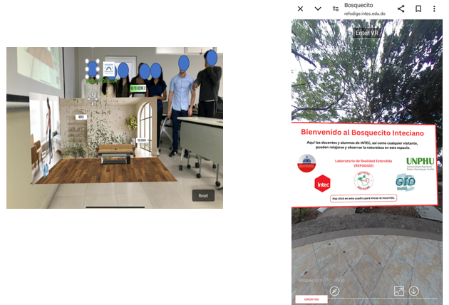 Este estudio tiene como objetivo principal conocer la percepción de los estudiantes en su rol de prosumidores de objetos en RE (RA y RV). Para responderlo, se han planteado dos preguntas, desde el punto de vista de los estudiantes participantes: a) ¿cuáles son las posibilidades de uso de la RE en el ámbito de la educación? y b) ¿qué ventajas e inconvenientes podría tener la RE como herramienta de producción de contenidos por los estudiantes? El tipo de muestreo es no probabilístico, pues la elección de los participantes no depende de la probabilidad, sino de causas relacionadas con las características de la investigación en un público cautivo (Marella, 2023). En el caso de este estudio, la muestra incluye 18 estudiantes del Instituto Tecnológico de Santo (INTEC) en la República Dominicana y de un colegio privado del país —Figura 1—: