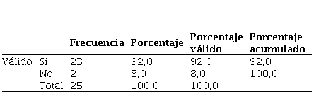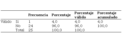 En cuanto a la formación que han tenido sobre las TIC durante el grado, el 96 % indica que no ha recibido ninguna, frente a un 4 % que dice que sí —Tabla 2—: