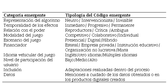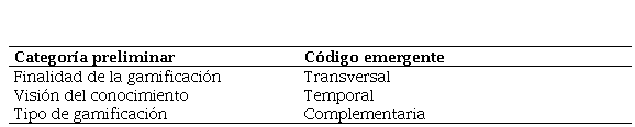 Durante la codificación emergieron otros códigos y categorías que se resumen en la Tabla 2.