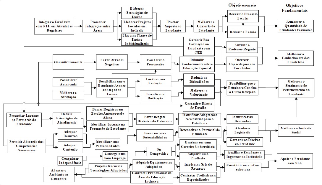 Por outro lado, a literatura sobre Pesquisa Operacional (PO) fornece um conjunto de abordagens para lidar com situações problemáticas complexas, tal como a questão de inclusão de estudantes com NEE no ensino regular. Tais abordagens são conhecidas como Métodos de Estruturação de Problemas (do inglês Problem Structuring Methods - PSM) (FRANCO; MONTIBELLER, 2011; ROSENHEAD, 2014). O presente estudo tem por objetivo identificar atividades necessárias visando à inclusão de estudantes com NEE por meio de uma abordagem envolvendo PSMs. Como demonstração, a abordagem é aplicada em uma unidade da Rede Federal de Ensino. A abordagem construída resultou em um meio, cognitivamente acessível, para identificação de diretrizes para inclusão e também permitiu ampliar o conhecimento dos envolvidos com relação à educação inclusiva.