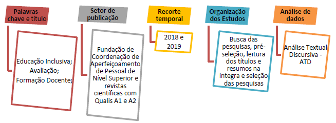 Na primeira etapa foram selecionados os descritores para organização do referencial teórico a respeito da Educação Inclusiva, Avaliação e Formação Docente;