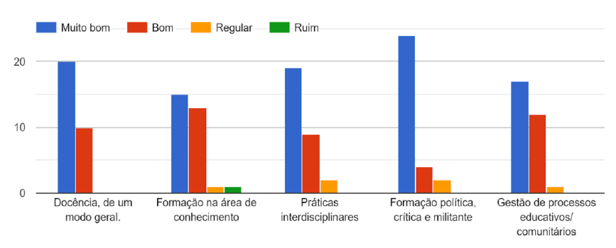 Em geral, os licenciados avaliam o curso de forma positiva. A avaliação sobre a formação política, crítica e militante é aquela mais acentuada pelos egressos.