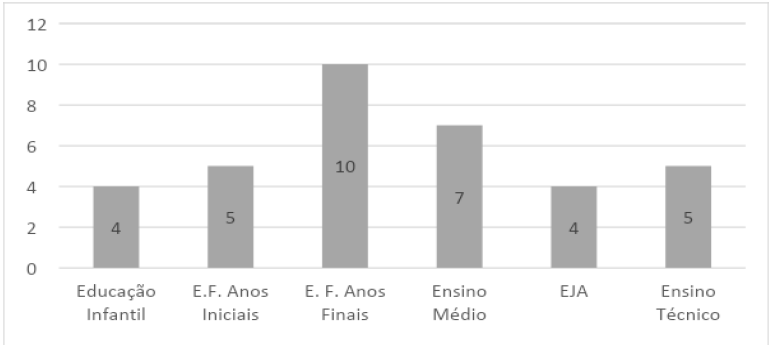Outra informação obtida dos licenciados nas instituições de ensino é sobre os níveis da educação básica em que atuam. Sobre esse quesito, temos os seguintes dados: