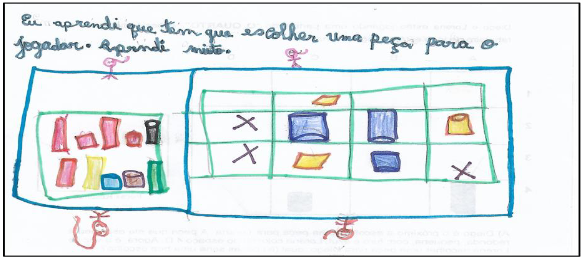 Ainda nessa etapa, as crianças tiveram espaço para avaliar como foi aprender a jogar O Quarto. Algumas das respostas podem ser visualizadas nas figuras 5 e 6, a seguir: