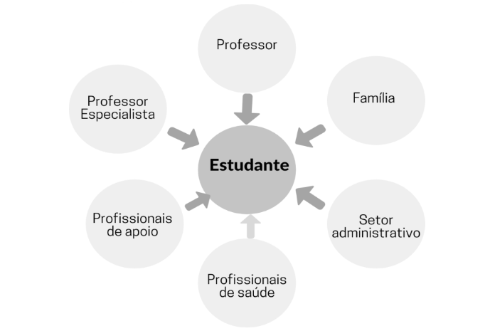 Nesse sentido, enquanto na primeira os envolvidos compartilham a mesma visão sobre os objetivos de desenvolvimento do estudante, sendo coautores de uma prática, na segunda os profissionais que compõem as redes de apoio, mesmo não tendo um mesmo objetivo prático dos demais, contribuem com diferentes dimensões de um processo de produção coletiva.