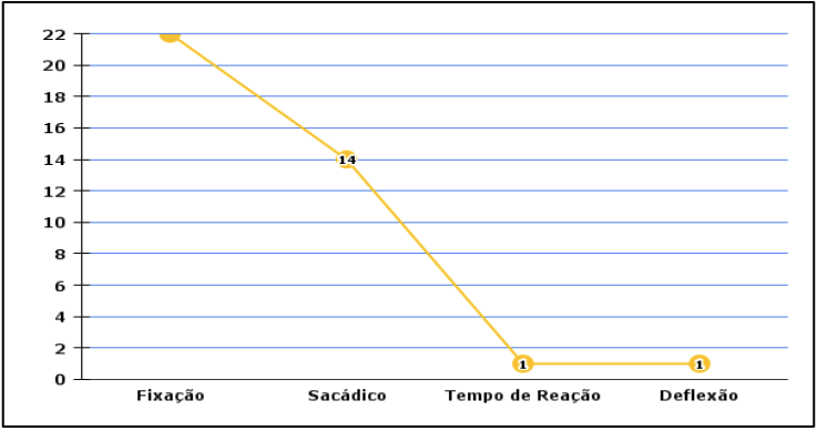 Essa problemática se agrava nas métricas do rastreio ocular, não tendo registros do que foi estipulado como necessário para ser considerado, por exemplo, uma fixação ou sacada, atuando como dificultador para comparação dos dados. Assim, mesmo havendo maior acordo entre eles em utilizar a fixação, como consta no Gráfico 3, não havia uma definição da mesma, deixando questionamentos como “quanto tempo corresponderia uma fixação?”, “esse valor pode ser unânime ou é particular de cada indivíduo?", “como foi estipulado este valor?” ou ainda “Como podemos comparar estes dados?”.