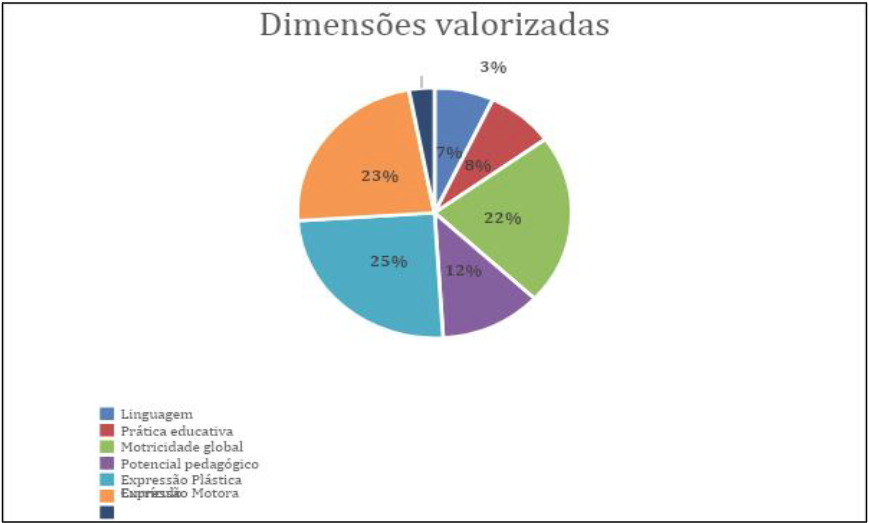 A Expressão Motora (23%) articulada particularmente com a Expressão Plástica e o desenvolvimento da Motricidade Global (22%):