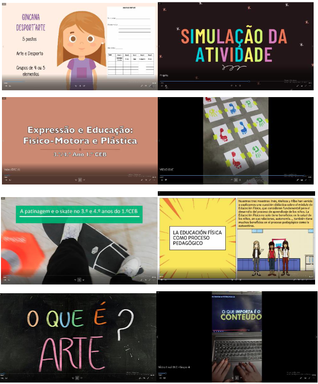 Uma particularidade do ensino de Didática das Expressões e Comunicação é que além da abordagem de ensino em sala de aula ou online, por módulos, respetivamente de Expressões Artísticas e Motoras e de Comunicação, a partilha de vivências é uma prática comum. Essa prática permite aos estudantes e professores interagir de modo mais eficaz, potenciando o processo de aprendizagem, sendo as questões de cunho teórico abordadas de acordo com as necessidades e exigências de cada contexto (PRENSKY, 2007). O vídeo, enquanto ferramenta pedagógica, é aqui transferido para a esfera de produção pelos próprios estudantes, em torno de uma atividade plurimodular, compreendendo a agregação dos conteúdos abordados em cada módulo, implicando-os na planificação, gravação e edição do vídeo.