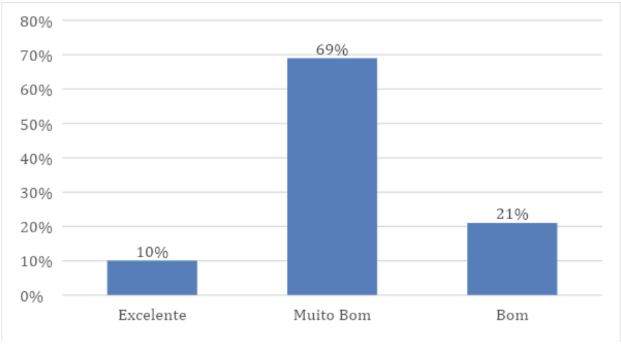 De acordo com os inquiridos, 10% autoavaliam o seu produto como Excelente; 69% como Muito Bom e 21% como Bom (Gráfico 1).