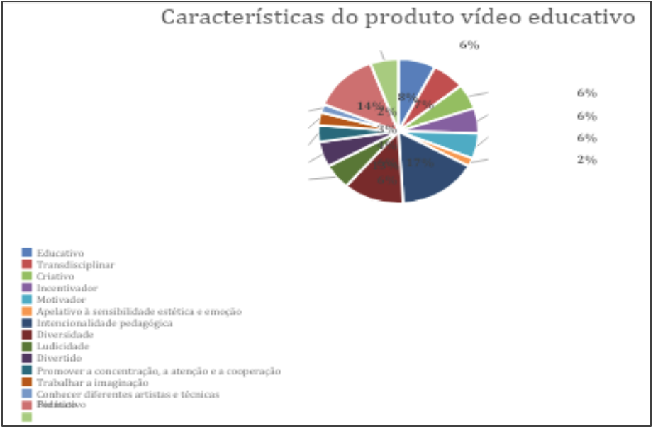 Decorrente da análise dos dados, são várias as características associadas ao produto vídeo educativo, destacando-se, sobretudo, o seu carácter formativo; a diversidade associada não só às propostas de atividades, mas também ao público-alvo, às competências a desenvolver, ao processo de criação/idealização e à intencionalidade pedagógica subjacente à sua futura intervenção profissional. Ele constitui-se como um recurso ao serviço da prática docente, por um lado e, a reflexão sobre essa intencionalidade e as conceções e valores implícitos na sua prática, o que valoriza no que as crianças sabem e fazem e no modo como aprendem.