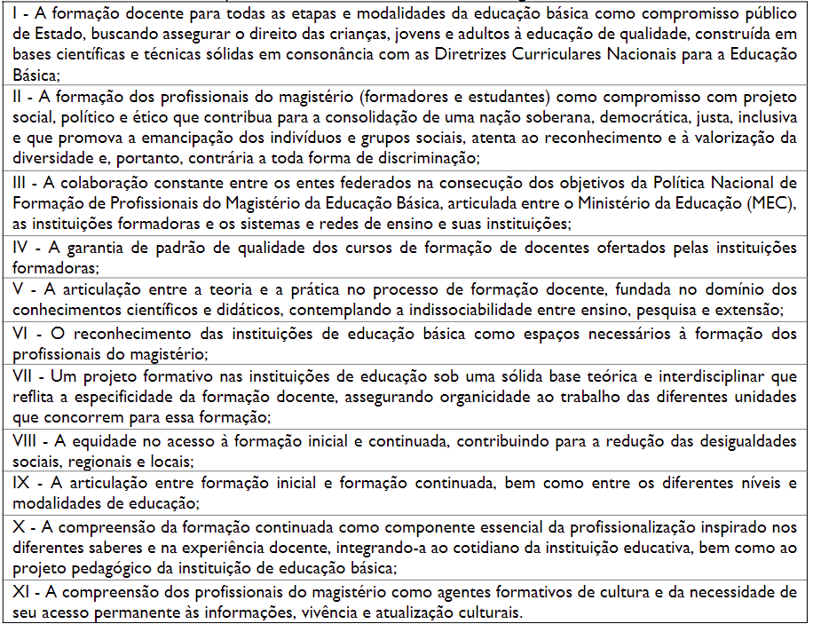 Sobre a formação de profissionais do magistério da Educação Básica, a Resolução nº 2 CNE/CP 2015 apresenta 11 princípios: