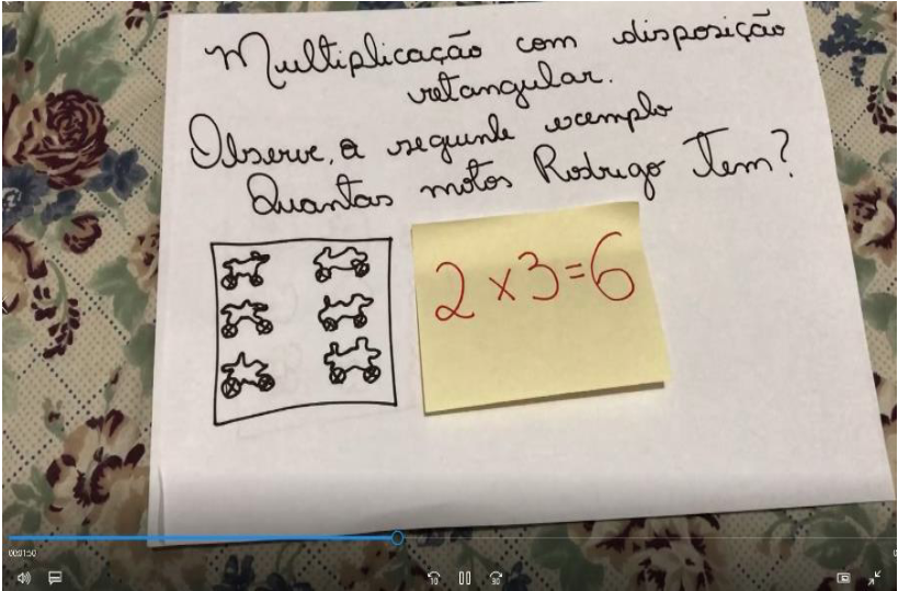 A figura 1 apresenta imagem de uma videoaula produzida pela estagiária do 3º ano do Ensino Fundamental para trabalhar o conteúdo de multiplicação: