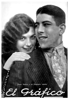 Aunque Roberto Cherro14 y, en menor proporción, el resto de los jugadores mencionados fueron los principales protagonistas en las tapas de El Gráfico en este período; otros referentes deportivos tuvieron, en muchas ocasiones, su espacio central en las portadas como, por ejemplo, el famoso ciclista Cosme Saavedra, el nadador Alberto Zorilla (primer campeón olímpico de Sudamérica en los Juegos Olímpicos de Ámsterdam 1928), el boxeador Luis Rayo, los automovilistas Antonio Gaudino o Raúl Riganti, el motociclista Ernesto Blanco, entre muchos otros. No obstante, la figura más expuesta, en esta temporada, no fue un futbolista, sino un auténtico ídolo popular vinculado al boxeo: Justo Suárez.15 Este boxeador argentino de peso liviano se ganó el reconocimiento y la admiración de buena parte de la prensa, de la "patria" deportiva y de importantes sectores de la sociedad argentina. A pesar de morir muy joven de tuberculosis, fue considerado uno de los grandes íconos del deporte argentino, ya que fusionó, según la prensa, sencillez, humildad, valentía, coraje y practicidad, con un tono de glamur, belleza y ascenso social (figura 16). En ese sentido, su origen social extremadamente humilde (trabajó desde los 9 años como lustrador y canillita, y comenzó a pelear por dinero a los 10 años en festivales porteños), su extracción popular, su color de piel, su particular forma de boxear y su rápido éxito social provocaron una enorme admiración e identificación con los sectores populares, quienes se sintieron empáticamente conectados con su historia de vida: "Suárez fue, sin lugar a dudas, el primer boxeador que atrajo a multitudes y ayudó a consolidar la popularidad del boxeo profesional y aumentar su atractivo económico" (Archetti, 2005, pp. 24-25).