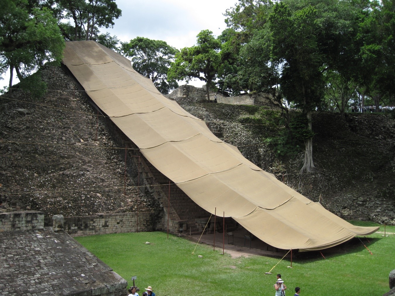 Unas veces, los edificios han sido restaurados bajo la dirección de arquitectos, ingenieros o restauradores con diferentes titulaciones, y otras por arqueólogos o antropólogos, y todo ello ha creado distintas formas de actuar que, en algunos casos, no han sido consecuentes con el valor del patrimonio cultural que tenían en sus manos, produciendo, en ocasiones, intervenciones demasiado precipitadas, sin la suficiente investigación y reflexión sobre la realidad material y cultural del edificio objeto de la misma, ni sobre su historia y evolución. Como ya hemos dicho, es necesario considerar que el patrimonio arquitectónico maya tiene un gran valor en sí, por sus características y por ser la mayor manifestación artística y cultural de esta civilización, tan desarrollada en su época de máximo esplendor hace más de mil años. Es por ello que es preciso tratarlo con un gran respeto, y ser muy cautelosos cuando se proyectan intervenciones con las que se pretende proteger y conservar estos bienes culturales ya que, ocasionalmente, la falta de suficiente información y análisis o el no disponer de un equipo multidisciplinar adecuado, pueden poner en peligro la integridad de los mismos. Ya sea por la utilización inadecuada de los materiales elegidos, por la falta de suficiente conocimiento de los valores arquitectónicos y culturales del edificio que es preciso preservar, o por utilizar algunos criterios de conservación y restauración inadecuados e incluso contraproducentes, se generan intervenciones que pueden falsear o poner en peligro la propia realidad material de la arquitectura (Figura 1)