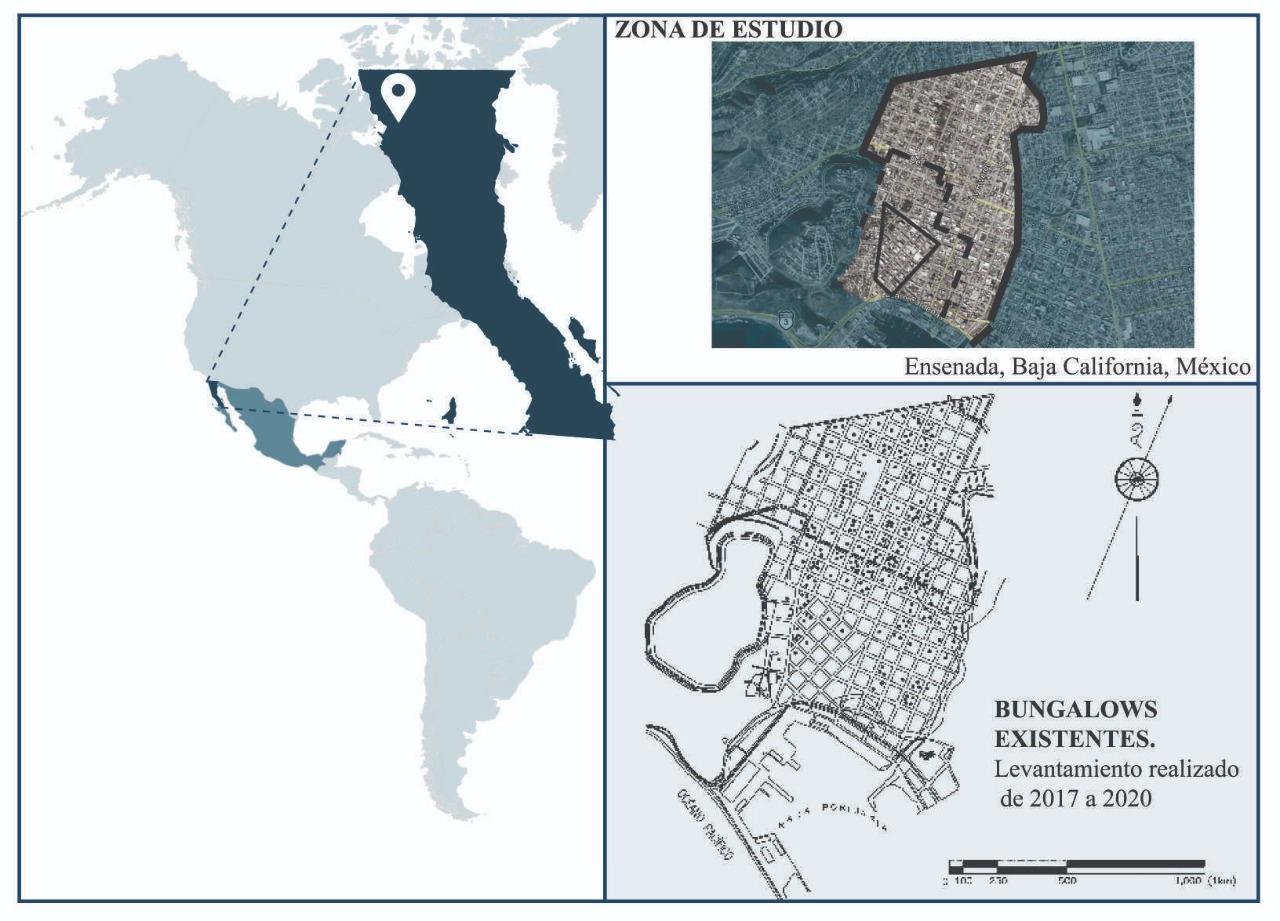 A partir del interés por ampliar el conocimiento del bungalow y su relación con la estructura urbana de Ensenada, la metodología que se empleó para la investigación se centró en la combinación entre el método cualitativo y el de interpretación histórica (Groat y Wang, 2002). Por un lado, el análisis histórico-tipológico proporcionó herramientas para la recolección de información de campo, y, por otro, el método cualitativo ayudó a reconocer y enmarcar la presencia social y cultural del fenómeno.