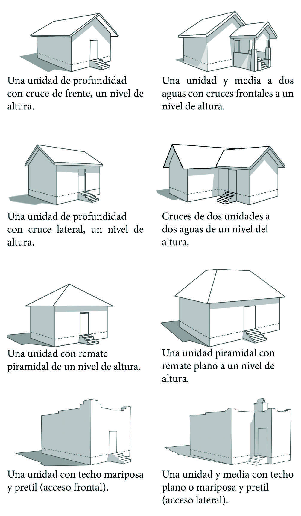 Otras adaptaciones frecuentes de esta clase son la clausura de vanos y la incorporación de habitaciones adyacentes realizadas con materiales de origen industrializado. Además, los zócalos y plataformas de desplante de madera son substituidos por placas o zapatas aisladas de concreto, así como muros de albañilería. (Figura 8)